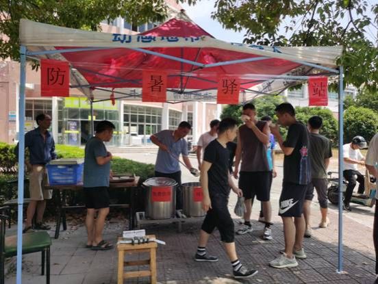 此外,学校后勤管理处还特地在南区东门设置了防暑驿站,全天为工人们免费提供饮用水、绿豆汤、仁丹等防暑降温用品,进一步体现了学校对一线员工的关怀与爱护。