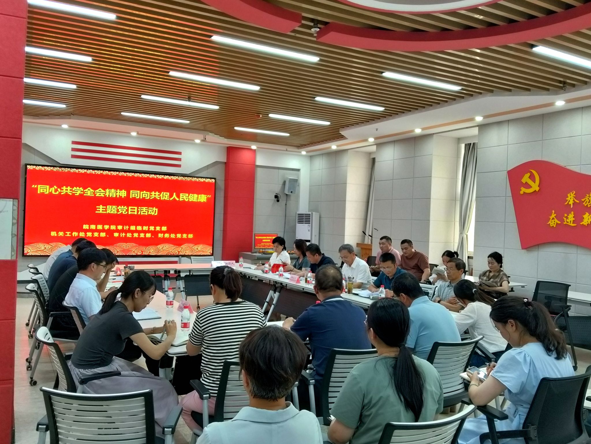 活动中,大家在学校党委书记夏劲松带领下,参观了校史馆,全面了解我校的建设发展历程,深刻感悟改革开放以来我国医疗卫生和教育事业取得的巨大成就。随后,大家走进党员活动室,以党员干部领学的形式,集体学习党的二十届三中全会通过的《中共中央关于进一步全面深化改革  推进中国式现代化的决定》中关于教育、科技、人才、医药卫生以及深入推进党风廉政建设和反腐败斗争等内容,跟进学习习近平总书记在纪念邓小平同志诞辰120周年大会的重要讲话精神。在集体学习的基础上,邀请马克思主义学院刘振宏副教授作党的二十届三中全会精神专题辅导报告,全面系统学习进一步全面深化改革、推进中国式现代化建设的重大意义、总体要求,深刻领会和把握全面深化改革的主题、重大原则、重大举措和根本保证。