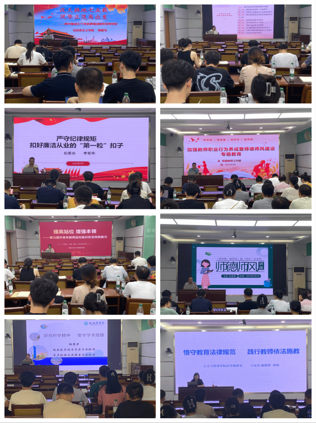 校纪委副书记、纪委办公室主任、巡察工作办公室主任李军华,人事处处长、教师工作部部长、教师发展中心主任李祥子分别就高校党纪法规、师德师风政策作专题报告,领学《新时代高校教师职业行为十项准则》《中国共产党纪律处分条例》、师德师风相关制度等,并进行警示教育;校“十佳教师”、检验学院孙恩涛以自己在学生培养过程中的身体力行作师德师风专题报告;校学术委员会秘书魏慧君详细解读学术规范文件和要求。