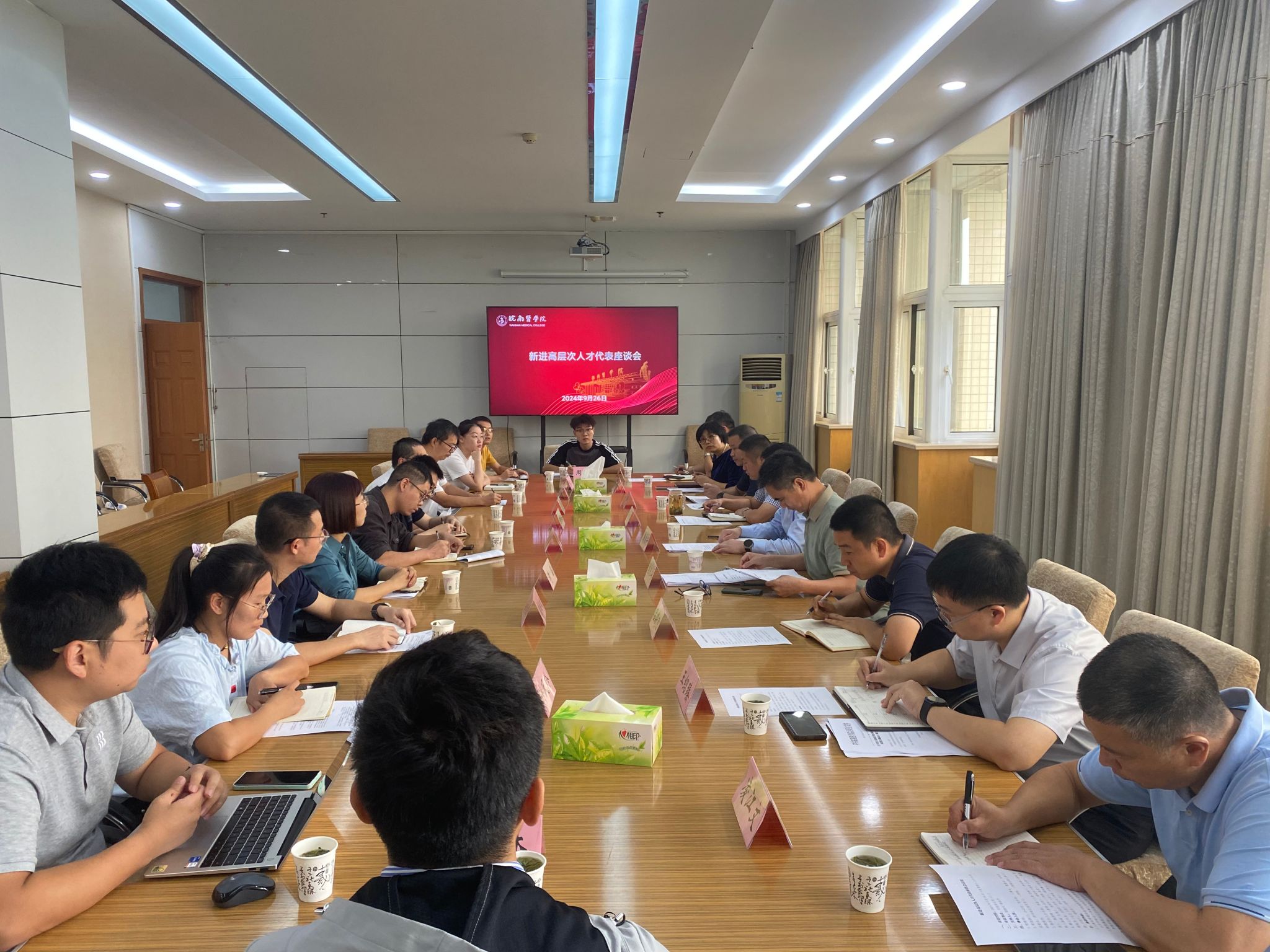 办公室、组织部、人事处、教务处、科研处、国有资产管理处、图书馆等部门负责人,直属附院分管人事人才工作负责人,新进高层次人才代表参加座谈。(唐礼庆/文、摄)