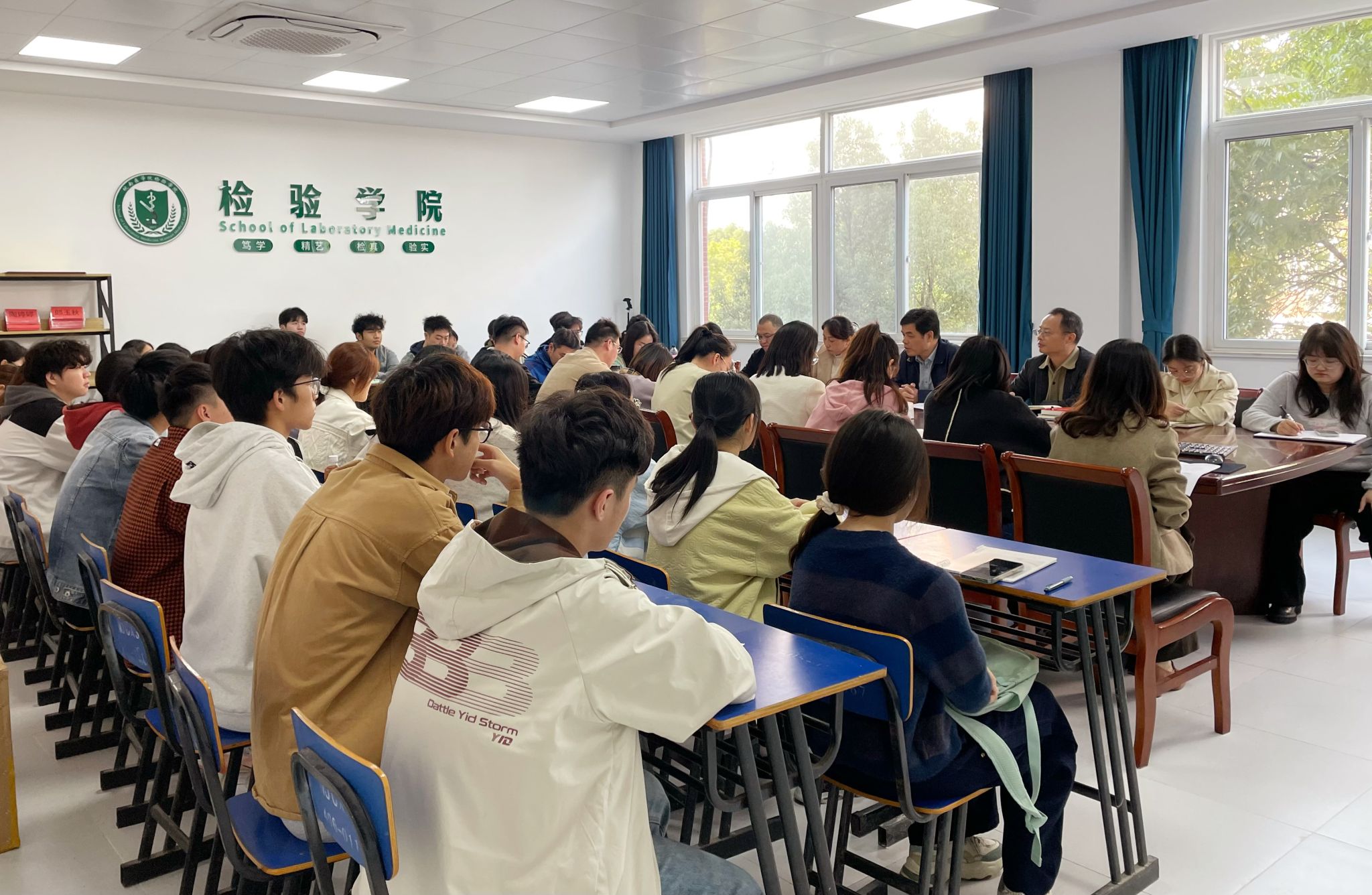 11月8日下午,校党委常委、纪委书记、监察专员王保中为检验学院师生宣讲党的二十届三中全会精神。检验学院负责人、师生党员、入党积极分子和递交入党申请书的大一新生近50人参加学习。