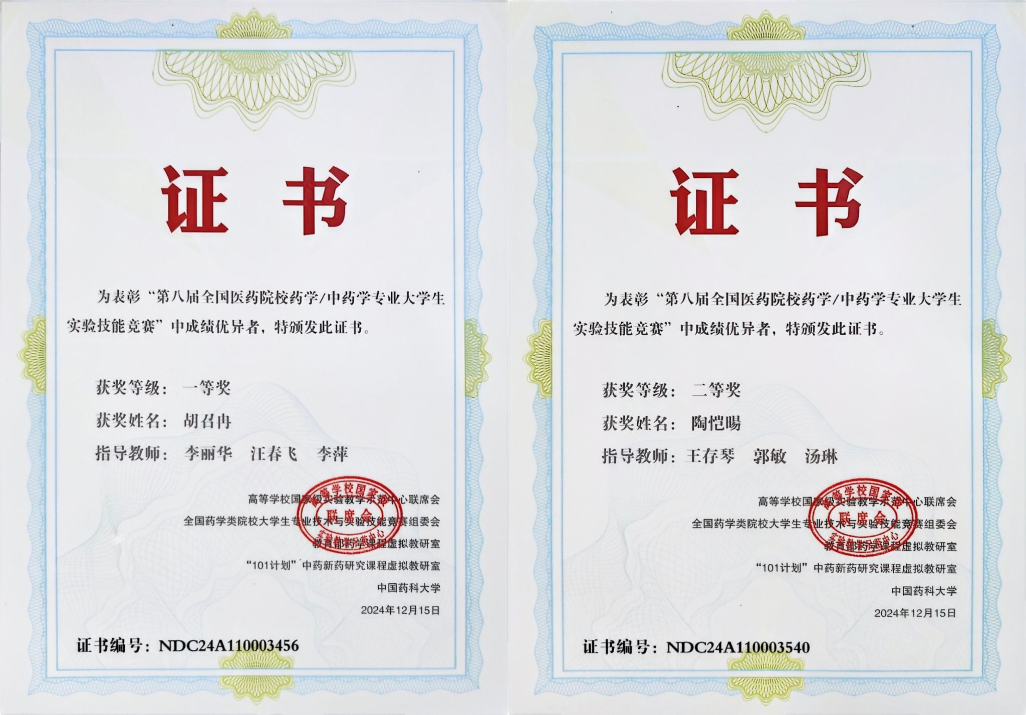 【高质量发展】我校在第八届全国医药院校药学/中药学专业大学生实验技能展示活动中获一等奖