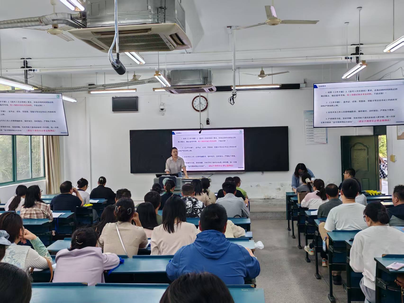 学校高度重视本次考试工作,成立考务工作领导小组,统筹负责全校专升本考试工作。领导小组下设六个工作组,制定了详细的工作方案和应急预案,明确责任到人,有序推进各项工作开展。4月15日、18日,学校分别召开考务工作协调会和全体考务、监考人员考前培训会,对考试工作进行再部署、再细化,要求切实提高政治站位,压实工作责任。