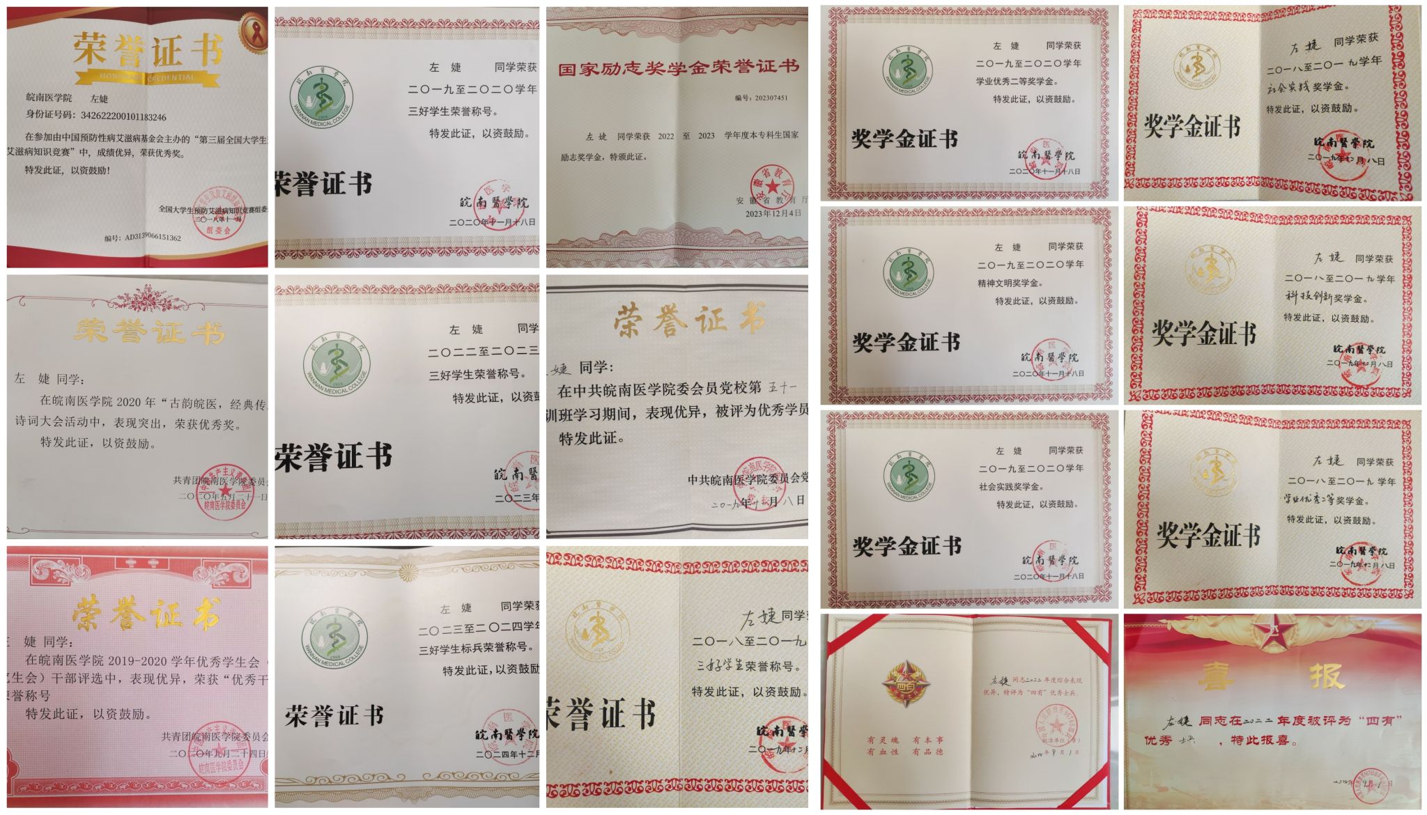 百舸争流,奋楫者先。奋斗是青春最亮丽的底色,只有不断拼搏,才能绽放出青春的芬芳。左婕积极向党组织靠拢,服役期间主动参与连队党建活动,作为优秀士兵代表前往八路军太行纪念馆参与红色教育基地参观并接受旅队新闻采访,代表连队参加旅党史知识竞赛,以扎实的理论功底和临场应变能力斩获二等奖。退役复学后第一时间递交入党申请书,深入学习党的创新理论,在党校培训班中获评“优秀学员”,于2024年6月光荣加入中国共产党。专业学习方面,左婕凭借扎实的专业基础和突出的综合素质,连续四年获评校级三好学生(三好学生标兵)荣誉称号,获国家励志奖学金、学业优秀奖学金等多项奖学金。
