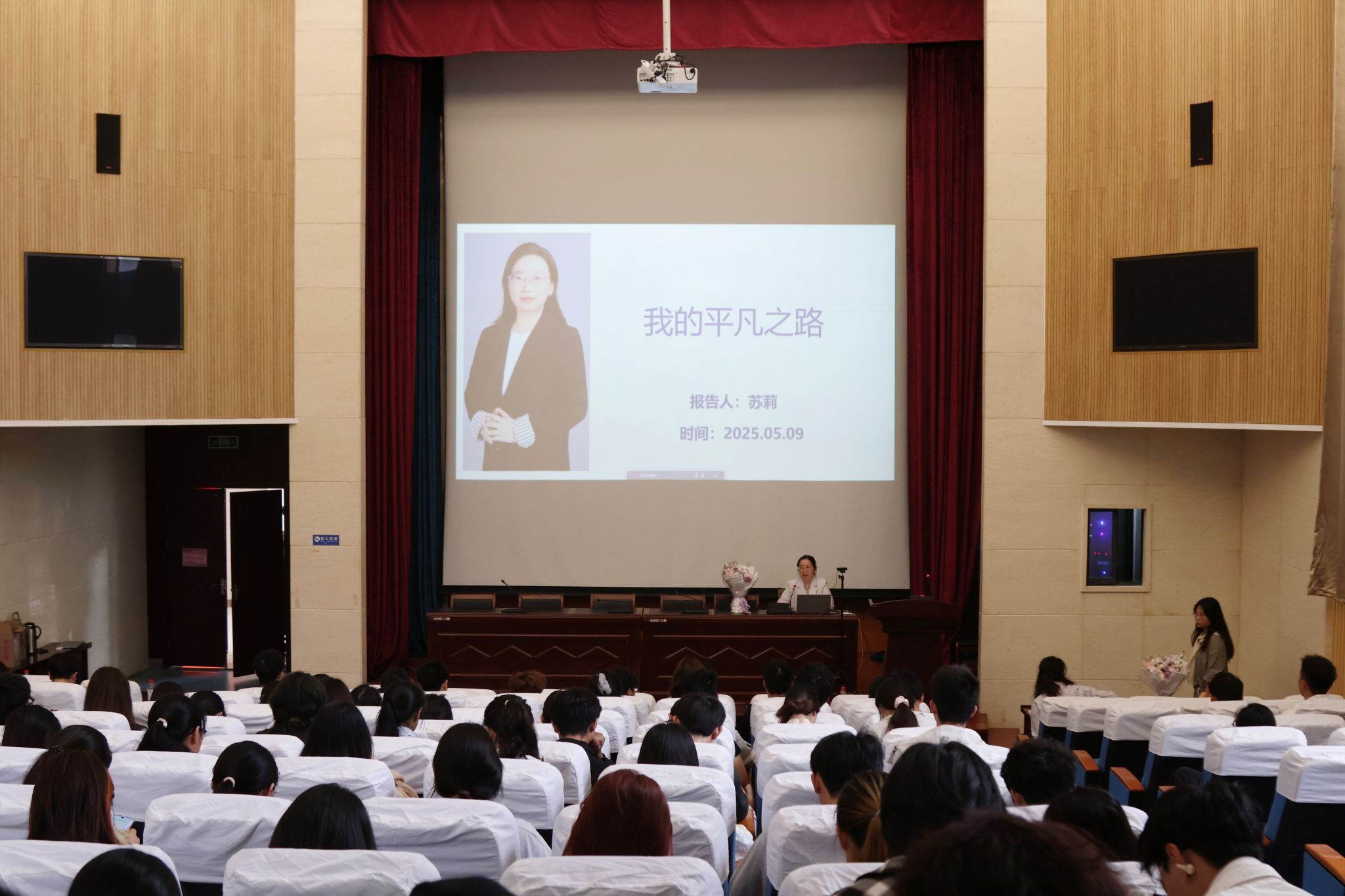 2024年安徽省五一劳动奖章、2025年安徽省三八红旗手获得者苏莉以“我的平凡之路”为题,深情讲述了在劳模父亲的教育引导下, 如何勤奋学习提升自我,并在平凡工作岗位勇担使命、默默耕耘守初心的奋斗故事。她启发青年大学生要始终保持乐观心态,坚持终身学习、跨界学习,积累更多知识,积极投身自己热爱的工作,努力在平凡中实现自己的人生价值。