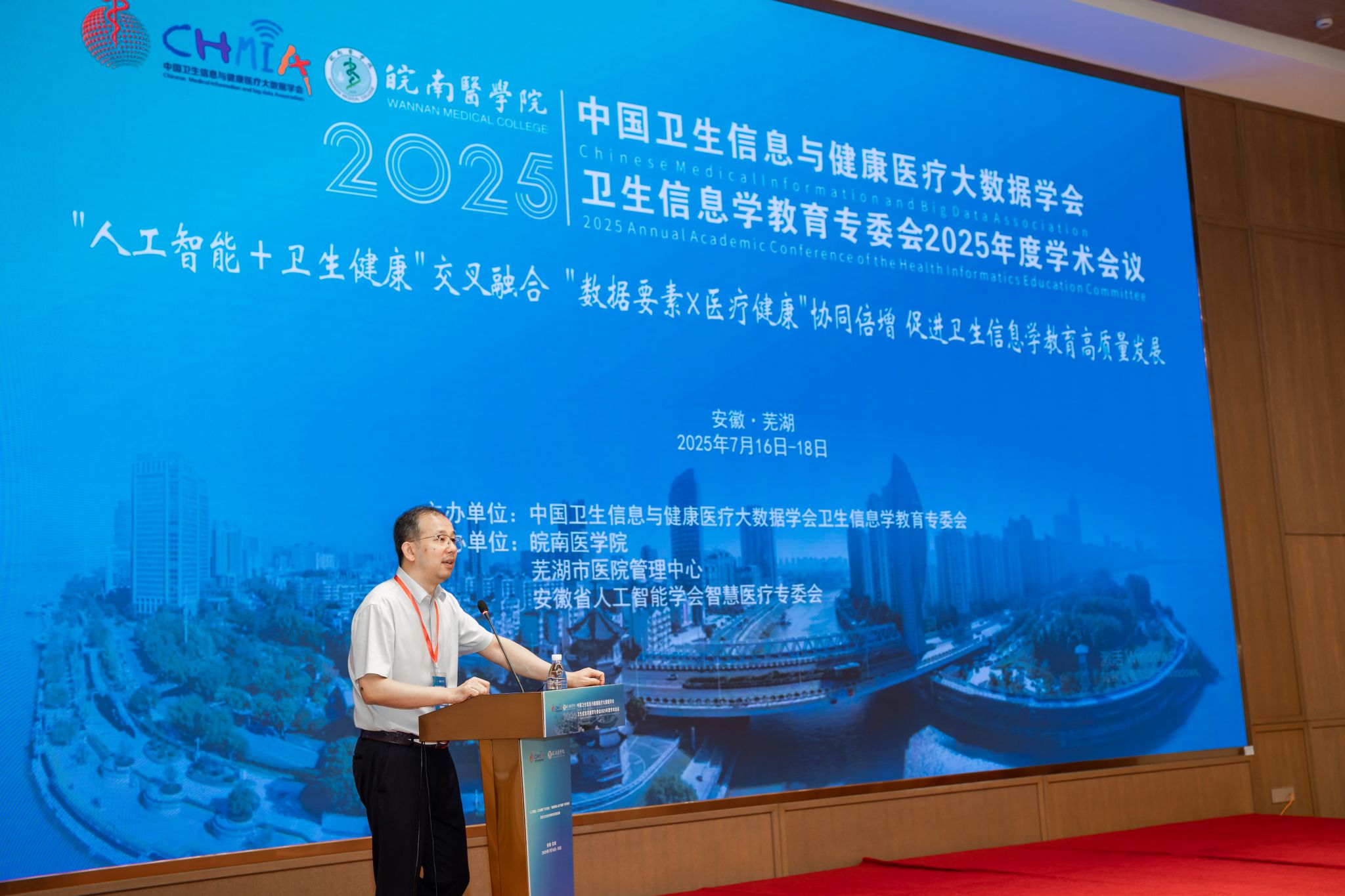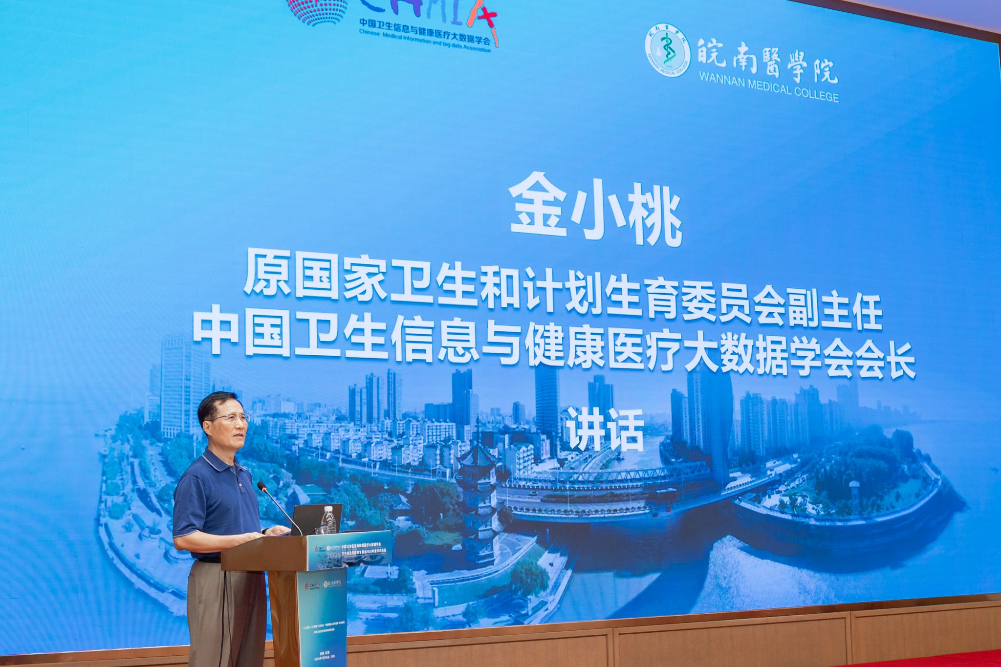 原国家卫生和计划生育委员会副主任、中国卫生信息与健康医疗大数据学会会长金小桃,原国家卫生计生委统计信息中心主任、原中国卫生信息学会常务副会长/秘书长孟群,原国家卫生健康委统计信息中心副主任、中国卫生信息与健康医疗大数据学会副会长胡建平,我校党委副书记、院长姚应水,芜湖市卫生健康委员会党委书记、主任杨燕等领导和嘉宾出席开幕式。开幕式由中国卫生信息与健康医疗大数据学会卫生信息学教育专委会主委张晓主持。