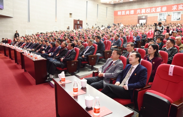 五湖四海缘自江城,莘莘学子情系皖医。活动开始前,现场观众通过大屏幕共同观看了《甲子征程 赤心寻梦》——皖医60周年宣传片,共同回顾了学校60年建设发展历程。来自海内外的莘莘学子通过视频向母校传递了他们发自内心的感恩和祝福。