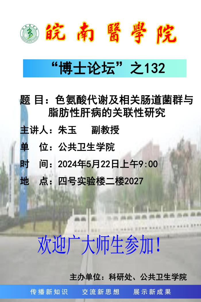 博士论坛之132:色氨酸代谢及相关肠道菌群与脂肪性肝病的关联性研究